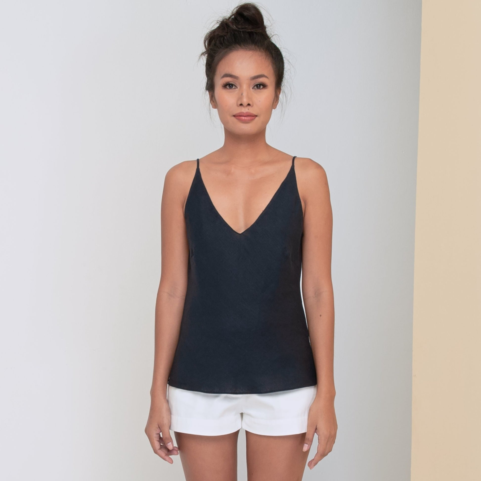 RINKI V CAMISOLE - Linen | Midnight Blue