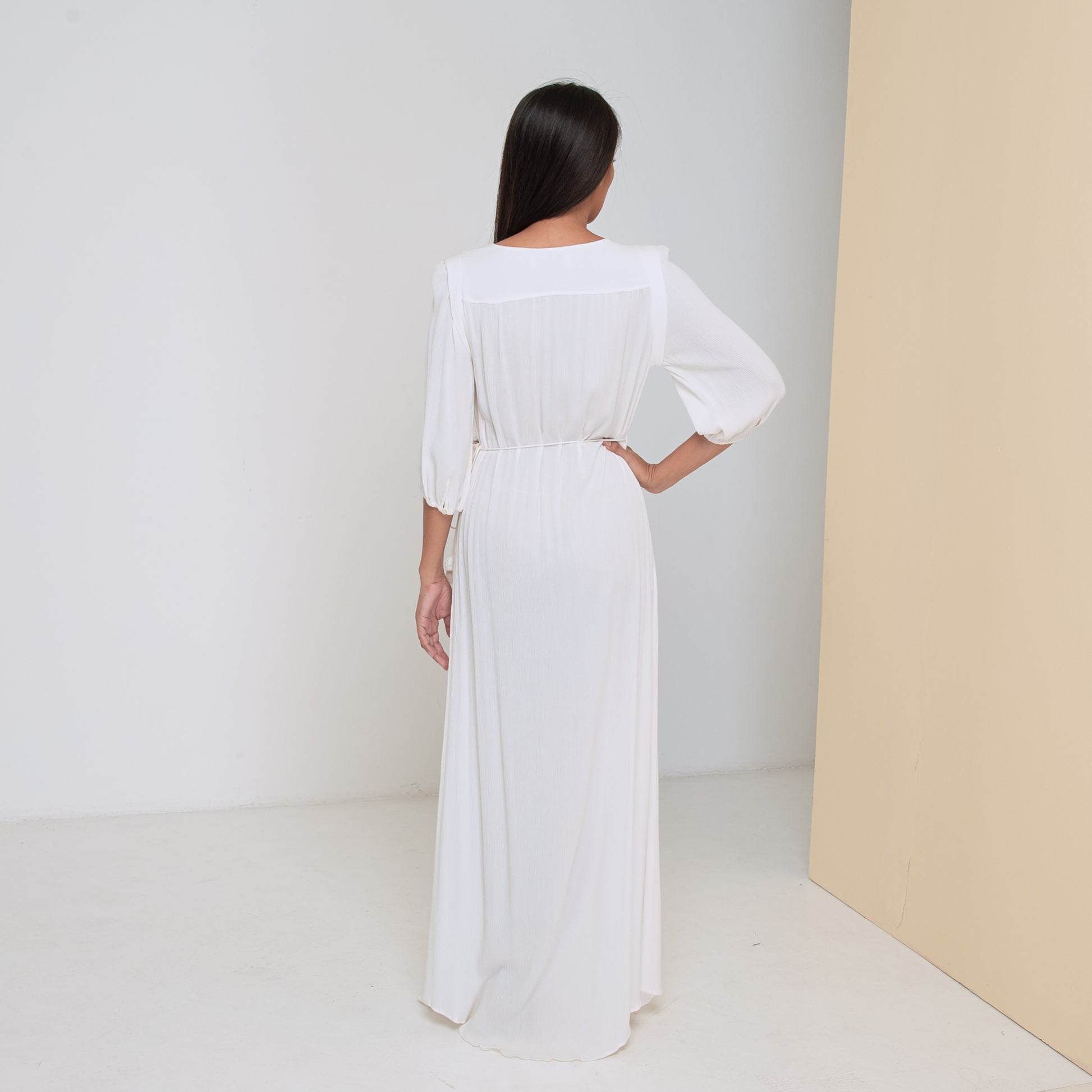 TRANSIT 3/4 SLEEVE LONG DRESS - Crinkled Rayon | Off White