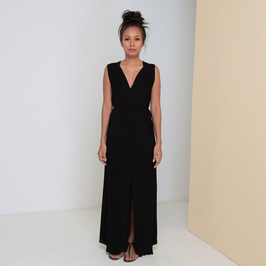 TRANSIT SLEEVELESS LONG DRESS - Crinkled Rayon | Black