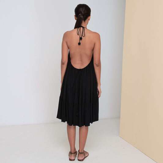 MINI RUFFLED BACKLESS DRESS - Rayon Fujette Crepe | Black
