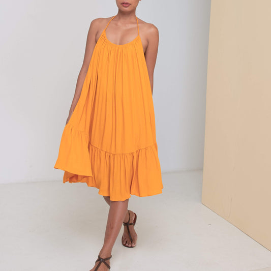 MINI RUFFLED BACKLESS DRESS - Rayon Fujette Crepe | Sunflower Yellow