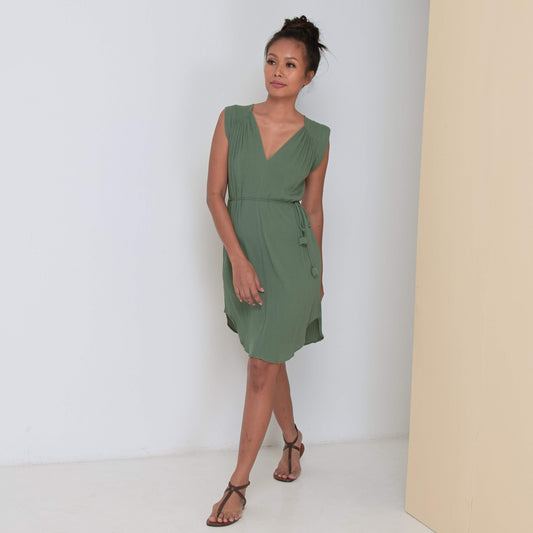 TRANSIT SLEEVELESS DRESS - Crinkled Rayon | Light Olive Green