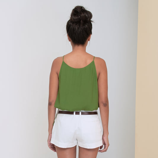 RINKI V STRING CAMISOLE - Rayon Fujette Crepe | Moss Green
