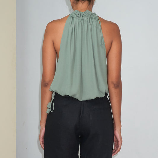STREAM HALTER TOP - Rayon Fujette Crepe | Light Olive Green