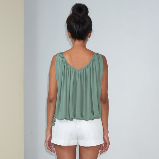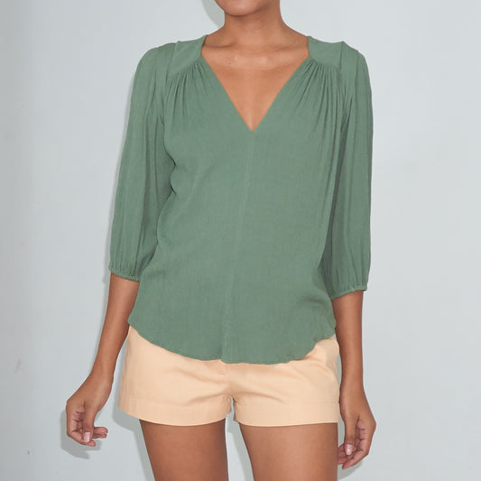 V-FLOW TOP - Rayon Voile | Light Olive Green