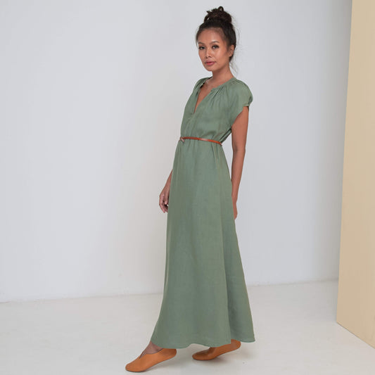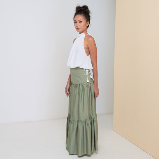 LONG VOLANTS SKIRT - Cotton Sateen | Light Olive Green