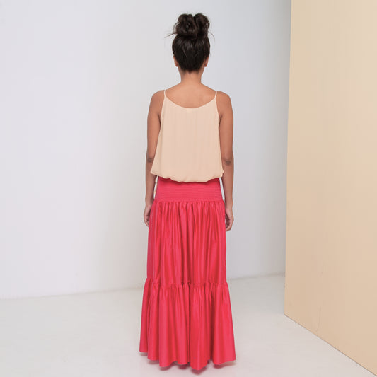 LONG VOLANTS SKIRT - Cotton Sateen | Hot Pink
