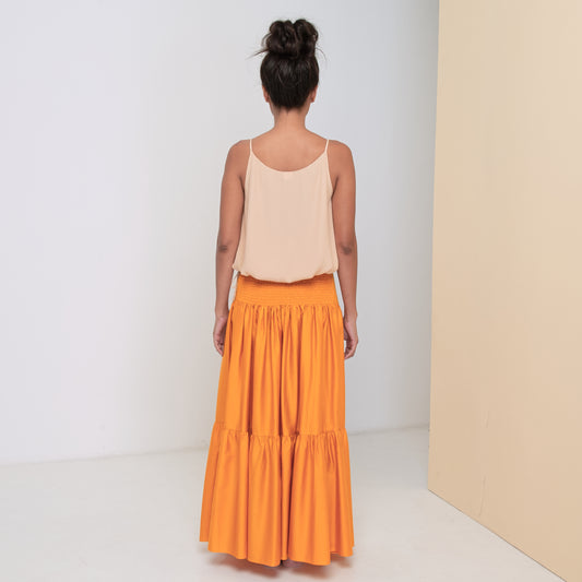 LONG VOLANTS SKIRT - Cotton Sateen | Sunflower Yellow