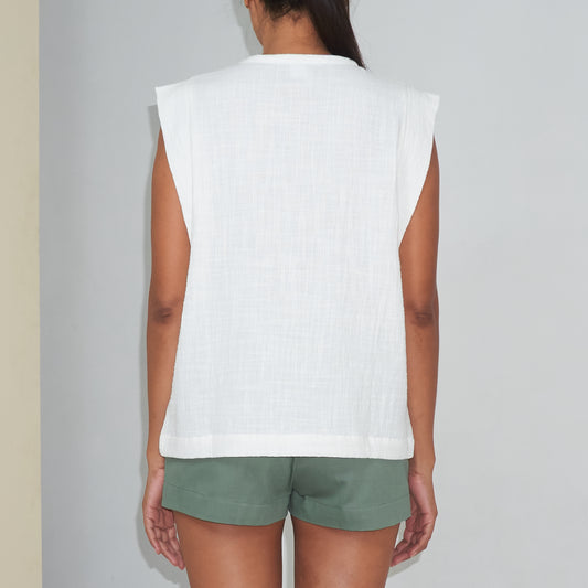 Sold outTEE V TOP - Cotton Gauze | Off White