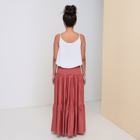 LONG VOLANTS SKIRT - Cotton Sateen | Dusty Rose