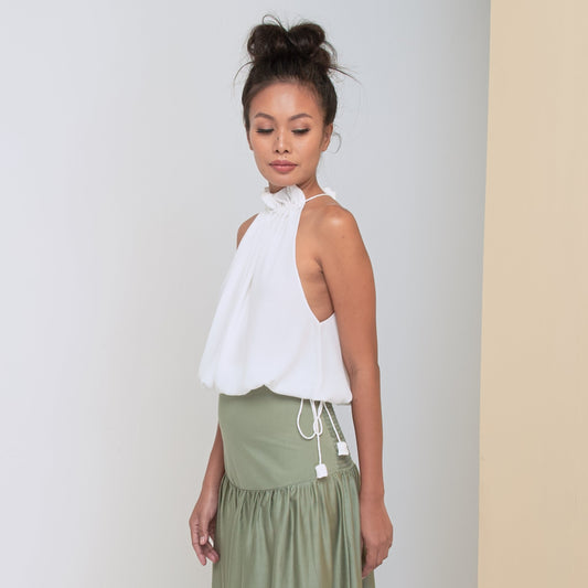 STREAM HALTER TOP - Rayon Fujette Crepe | Off White