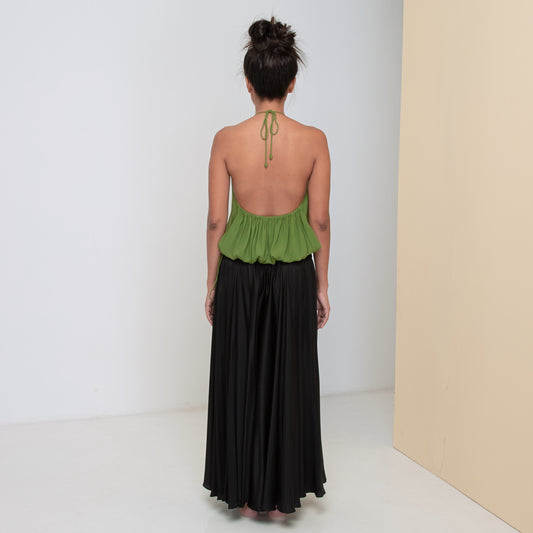 LONG RUFFLED SKIRT - Rayon Voile | Moss Green