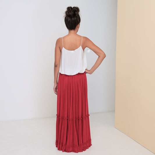 LONG RUFFLED SKIRT - Rayon Voile | Dark Raspberry