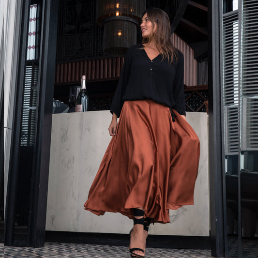 INFINITY SKIRT - Rayon Viscose Satin | Rusty