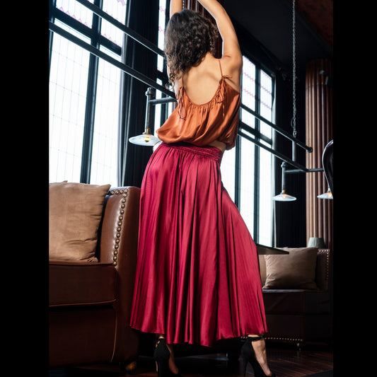 INFINITY SKIRT - Rayon Viscose Satin | Burgundy