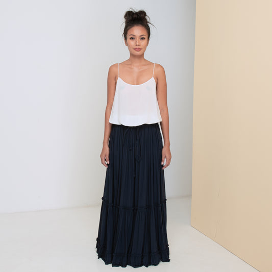 LONG RUFFLED SKIRT - Rayon Voile | Midnight Blue