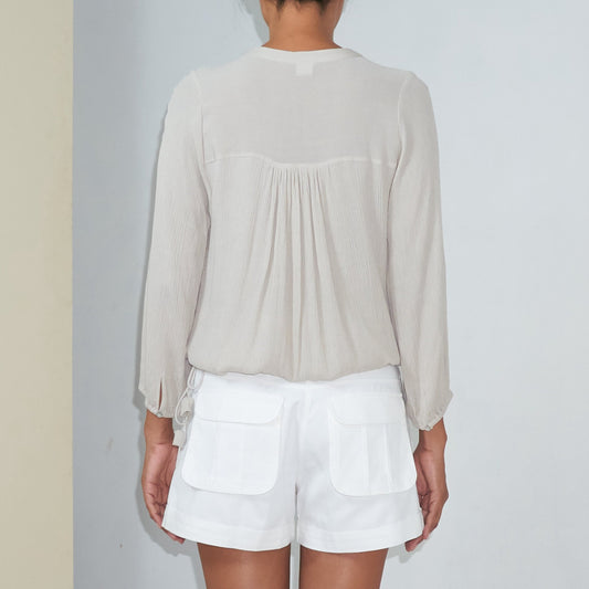 BKLN TOP - Crinkled Rayon | Light Grey Greige