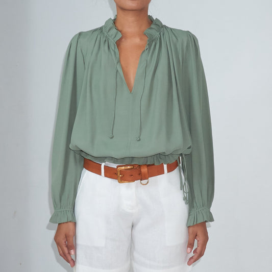 KATY BLOUSE - Rayon Fujette Crepe | Light Olive Green