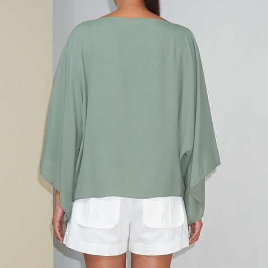 DAUN KIMONO TOP - Rayon Fujette Crepe | Light Olive Green
