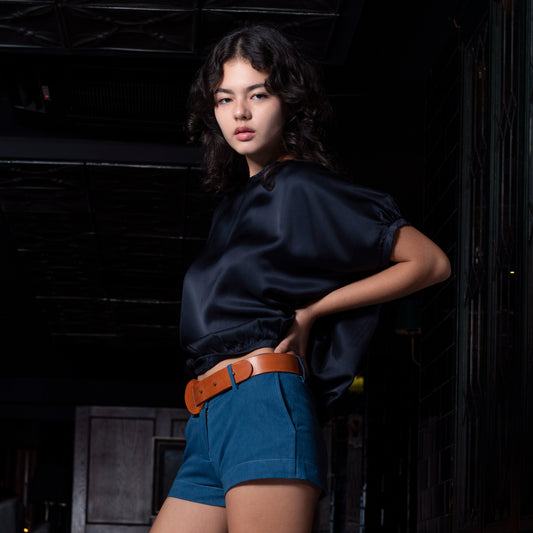 BOX SS TOP - Rayon Viscose Satin | Midnight Blue