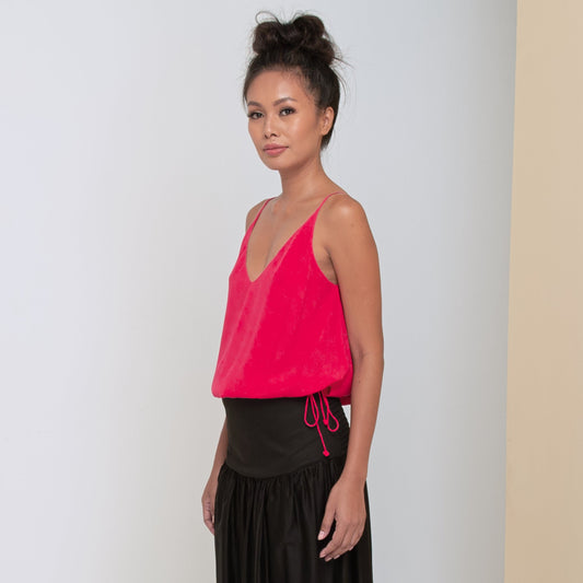 RINKI V STRING CAMISOLE - Rayon Fujette Crepe | Hot Pink