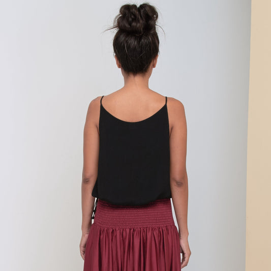 RINKI V STRING CAMISOLE - Rayon Fujette Crepe | Black