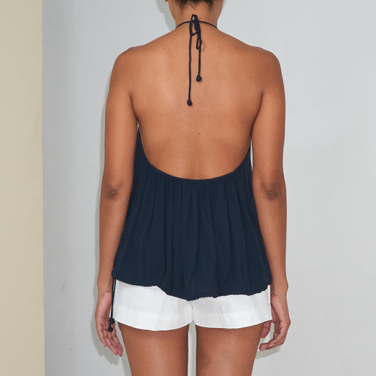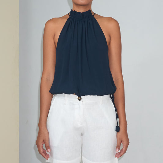 RUSH HALTER TOP - Rayon Fujette Crepe | Midnight Blue