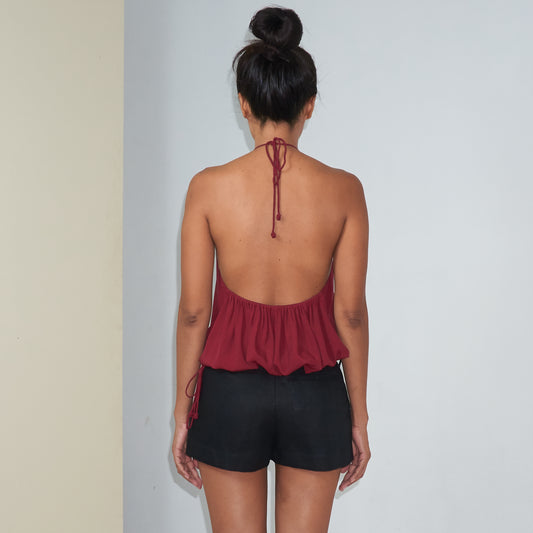 RUSH HALTER TOP - Rayon Fujette Crepe | Burgundy
