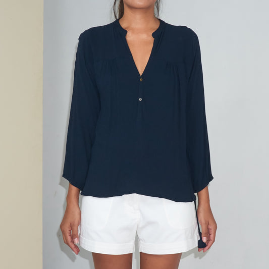 Sold outKALI TOP - Linen | Midnight Blue