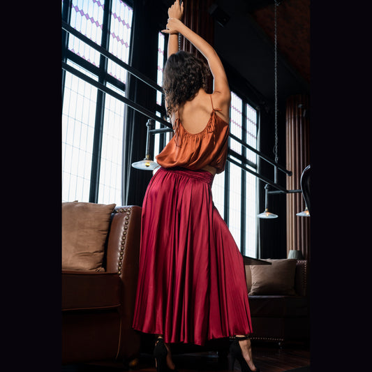RINKI FLOW STRING CAMISOLE - Rayon Viscose Satin | Rusty